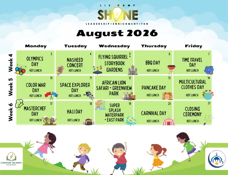 Our camp is designed to keep children active, creative, and involved throughout the day. Campers will participate in a variety of activities including sports, games, arts and crafts, themed days, and special events. Each week brings new experiences that encourage teamwork, confidence, and personal growth.